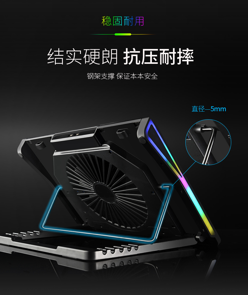 這款散熱器主要上貓,產品特點主要是獨立大風扇,風量大,RGB七彩炫光,可調可控,所以在設計中根據產品調性,以深色為主色調,對產品的功能,特點進行深度挖掘,加上特效演示,來展示產品的設計原理,上線后轉化率明顯上升。