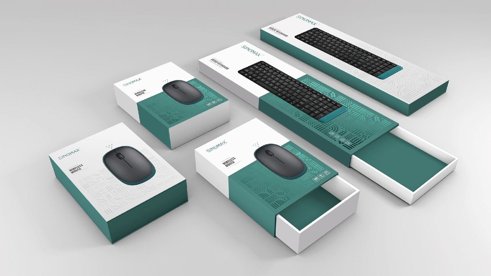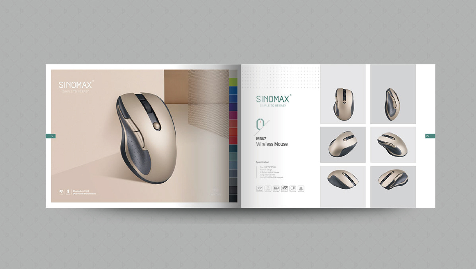 剛開始對接這個項目時,公司總監和設計師一下興趣就來了,創始人不一樣的視覺,不一樣的產品定位讓我們看到了傳統行業轉型的新亮點。項目包含品牌logo設計,品牌形象策劃設計,包裝設計,品牌網站設計,畫冊設計, 展會海報設計,產品圖片拍攝等,經過團隊的調研,以及對行業對標品牌的分析,我們決定走一個不一樣的視覺體系風格---文創風。科技產品走文創風,這一大膽的想法立刻獲得品牌創始人的認可。于是大家開始定調性,塑造元素,將品牌主營的產品鼠標,鍵盤,無線接收器等作為元素來源,進行抽象化設計,創意,然后再應用到品牌物料中去, 通過顏色,組合,工藝來呈現。簡約大方,文藝有內涵。