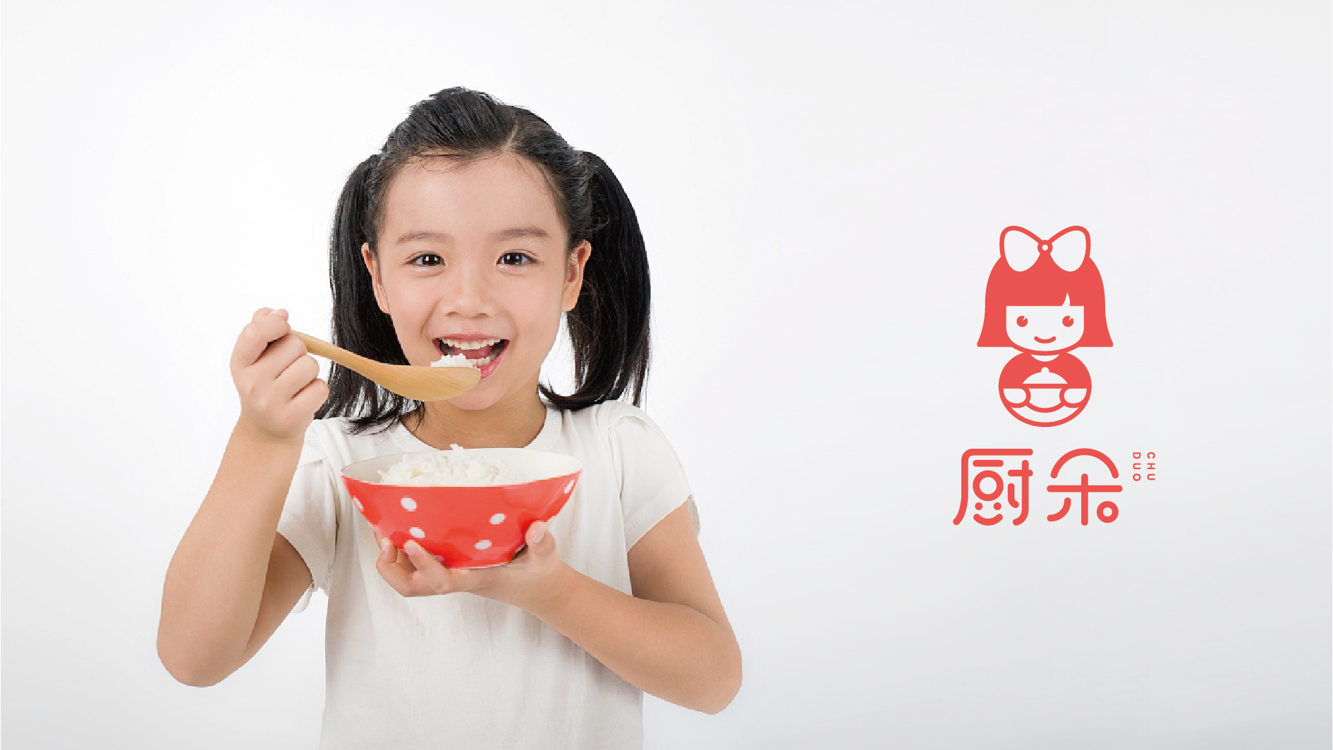 本標志的設計直接從品牌名稱的含義切入,將其塑造成一個健康、活潑、可愛、好吃的小女孩形象-朵朵。 吃飯的女孩露出了燦爛的微笑,體現了食物的美味與健康,廚朵帶來的不僅是味覺盛宴更是心情盛宴,領結用以體現熱情、親和的服務和干凈健康的食品保障。 標志的設計簡約而具代表性,很形象的突出了行業的屬性,給人直觀的品牌形象。