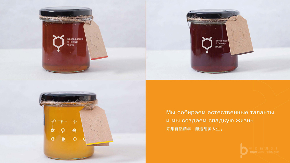 本項目為蜂還巢高端產品系列品牌設計,首先品牌logo從蜂巢,蜜蜂,蜂蜜這三個元素來提練塑造,形成一個獨特個性的圖騰,簡約直觀,識別性強。應用物料部份,側主要為瓶貼,包材,體驗終端進行統一視覺打造。