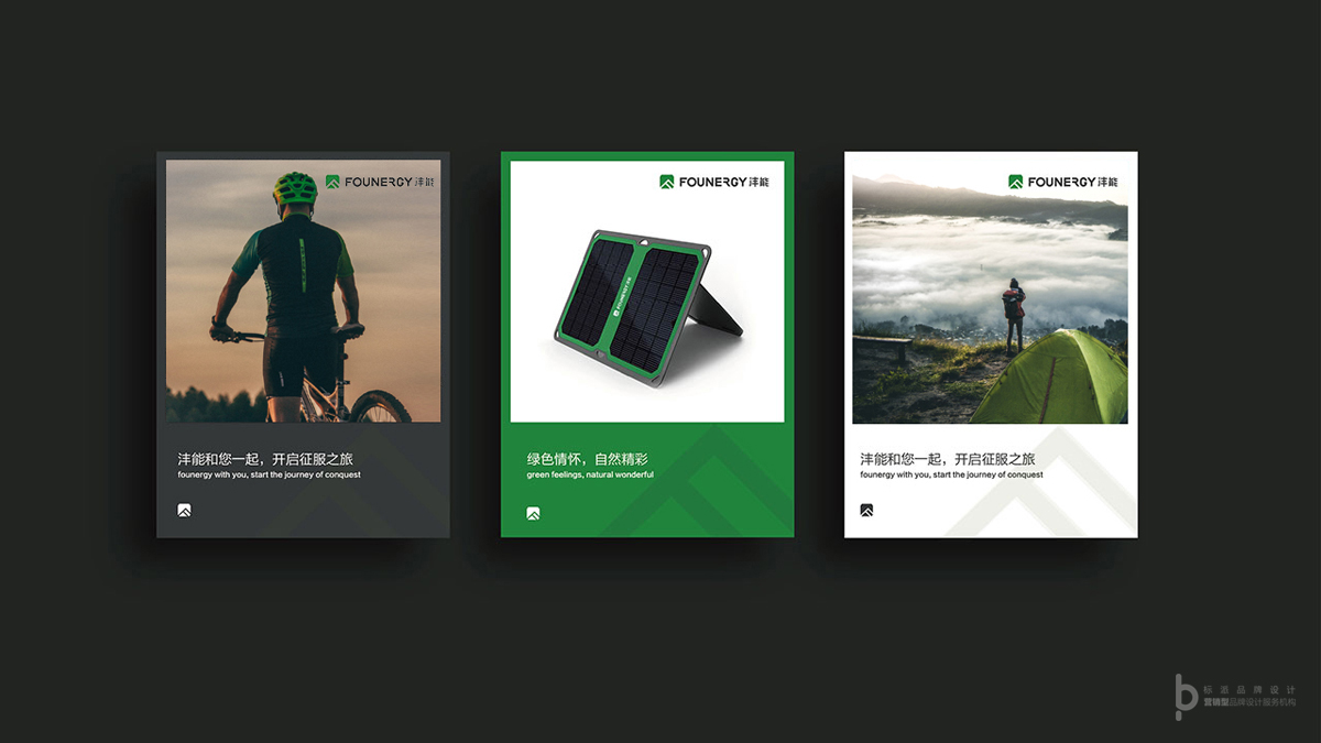 元素會以太陽(能源),綠葉(環(huán)保),山峰(戶外,前進(jìn),冒險).和品牌名稱首字枰'F''N'進(jìn)行融合設(shè)計,得到屬于灃能品牌特有的圖形元素。